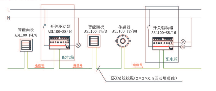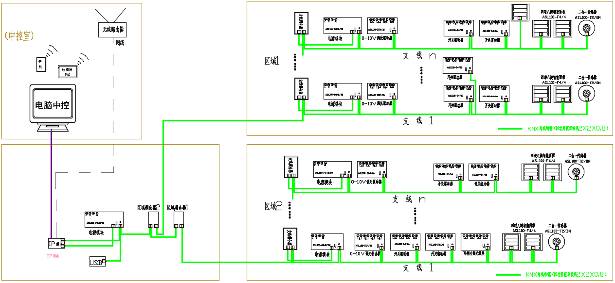 4)系統采用分布分布式KNX總線結構,搭建簡單靈活,系統內各模塊互不影響,可獨立工作,可靠性更高;
