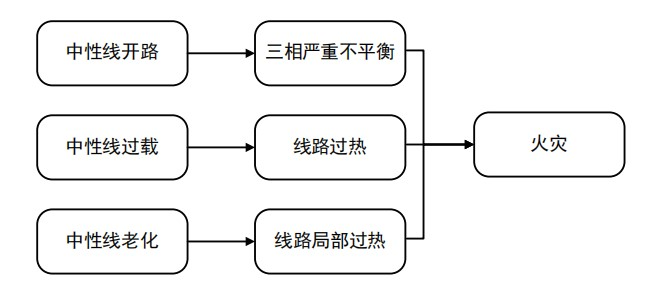 在三相四線制或五線制供電系統(tǒng)運行過程中,中性線引發(fā)火災事故主要通過三種途徑: